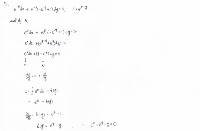 Advanced Engineering Math. Problem set 1.4 : 13 ~ 15